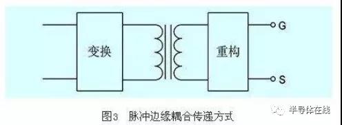 對于高壓大功率 igbt,上述驅(qū)動方式顯然無法應(yīng)用。通常用的方法是調(diào)制驅(qū)動脈沖信號,將其上升沿和下降沿轉(zhuǎn)換為兩個反相的窄脈沖信號,脈沖變壓器只是將這兩個脈沖信號耦合到次級,再通過次級重構(gòu)的方法還原驅(qū)動脈沖信號。其工作原理如圖 3 所示。
