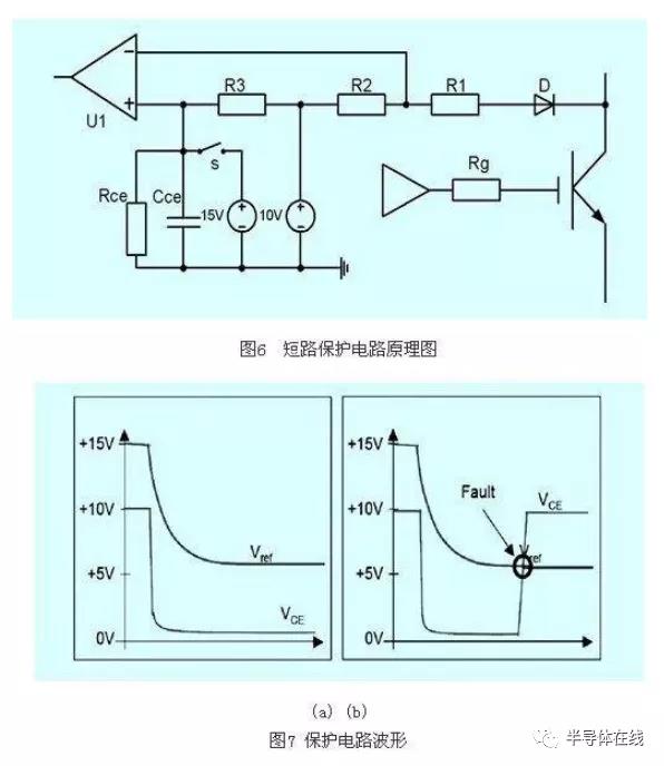 這樣就可以使得在 igbt 開通初期,參考電壓高于檢測電壓,防止保護(hù)電路誤動作,正常工作時的波形如圖 7(a)所示。發(fā)生短路或過流故障時的波形如圖 7(b)所示。