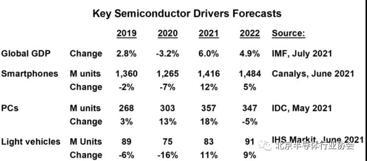 一旦半導(dǎo)體供應(yīng)趕上需求,2022年的增長將取決于經(jīng)濟(jì)和終端設(shè)備的需求。國際貨幣基金組織(IMF)7月預(yù)測,隨著世界從疫情中復(fù)蘇,2021年全球GDP將增長6.0%。