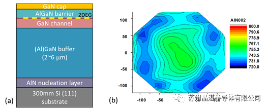 圖2:(a)晶湛半導(dǎo)體300mm GaN-on-Si HEMT外延結(jié)構(gòu)示意圖