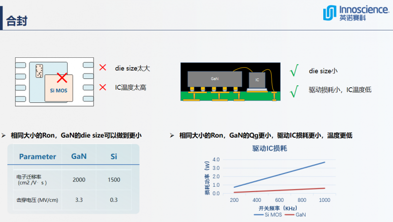 隨著市場(chǎng)對(duì)快充適配器功率密度的不斷追求,適配器的開(kāi)關(guān)頻率逐漸提升,以縮小內(nèi)部元件體積,傳統(tǒng)的Si MOS器件,開(kāi)關(guān)損耗和驅(qū)動(dòng)損耗已經(jīng)明顯拉低了適配器的轉(zhuǎn)換效率,器件限制不能繼續(xù)提高工作頻率,限制了磁性元件的縮小,不能進(jìn)一步提升適配器的功率密度。