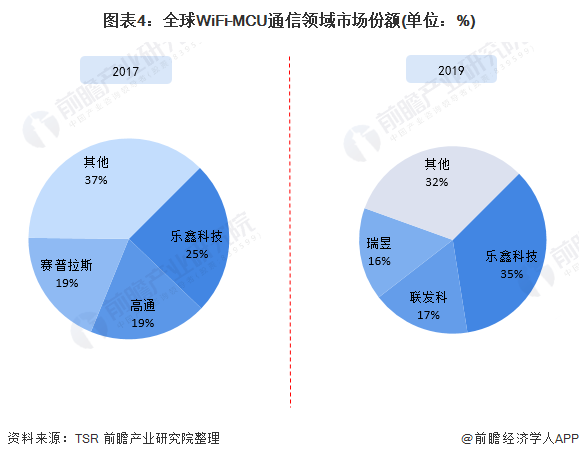 圖表4:全球WiFi-MCU通信領(lǐng)域市場份額(單位:%)