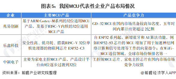 圖表5:我國MCU代表性企業(yè)產(chǎn)品布局情況