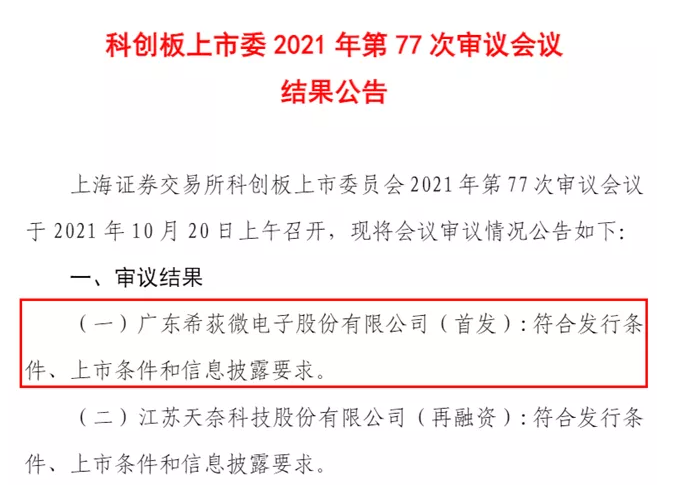 10月20日,據(jù)上交所科創(chuàng)板上市委2021年第77次審議會議結(jié)果顯示,廣東希荻微電子股份有限公司(以下簡稱:希荻微)科創(chuàng)板IPO成功過會。