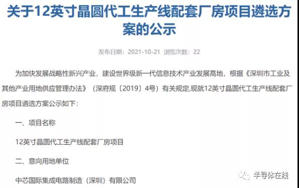 近日,深圳市坪山區(qū)投資推廣服務(wù)署發(fā)布“關(guān)于 12 英寸晶圓代工生產(chǎn)線配套廠房項(xiàng)目遴選方案的公示”,公示顯示,項(xiàng)目意向用地單位為中芯國際集成電路制造(深圳)有限公司,將建設(shè) 12 英寸晶圓代工生產(chǎn)線所需的大宗氣站及化學(xué)品倉庫等配套設(shè)施,總建筑面積約 69410 平方米(以土地出讓合同為準(zhǔn))。