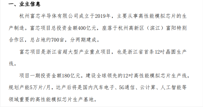 2019年11月15日,富芯半導(dǎo)體與杭州高新區(qū)(濱江)富陽特別合作區(qū)管委會簽約,新建模擬芯片IDM項目,總投資約400億元,總占地約700畝,分兩期建成。其中項目一期投資金額180億元,建設(shè)全球領(lǐng)先的12吋高性能模擬芯片生產(chǎn)線,規(guī)劃產(chǎn)能5萬片/月,達(dá)產(chǎn)后將是國內(nèi)汽車電子、5G通信、云計算、人工智能等領(lǐng)域重要的高性能模擬芯片生產(chǎn)基地。