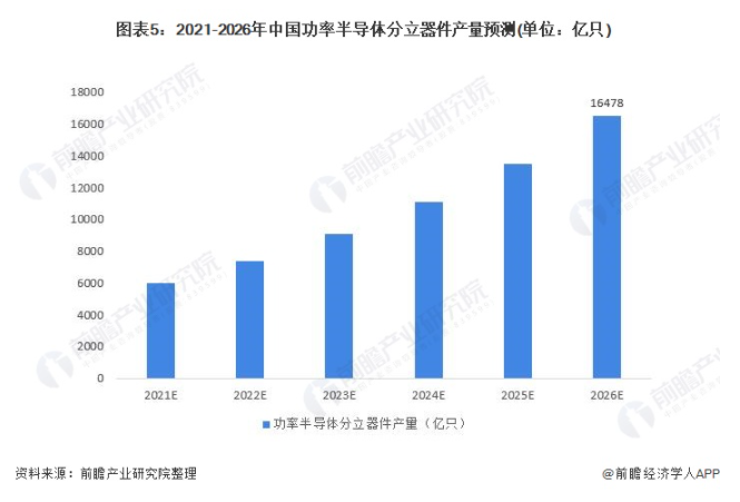 展望未來,依據(jù)全球需求的普遍上升,加上中國制造分立器件如MOSFET、二極管及三極管的龐大產(chǎn)能,中國功率半導體分立器件市場規(guī)模預期將會持續(xù)增長。預計到2026年,中國功率半導體分立器件產(chǎn)量將超過16000億只,產(chǎn)值將超過500億元。