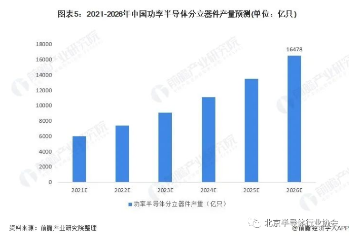 展望未來,依據(jù)全球需求的普遍上升,加上中國制造分立器件如MOSFET、二極管及三極管的龐大產(chǎn)能,中國功率半導(dǎo)體分立器件市場規(guī)模預(yù)期將會持續(xù)增長。預(yù)計到2026年,中國功率半導(dǎo)體分立器件產(chǎn)量將超過16000億只,產(chǎn)值將超過500億元。