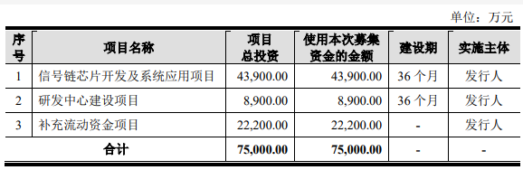 上會(huì)稿顯示,納芯微電子此次擬募集資金7.5億元,扣除發(fā)行費(fèi)用后將主要用于信號(hào)鏈芯片開(kāi)發(fā)及系統(tǒng)應(yīng)用項(xiàng)目、研發(fā)中心建設(shè)項(xiàng)目、以及補(bǔ)充流動(dòng)資金項(xiàng)目。