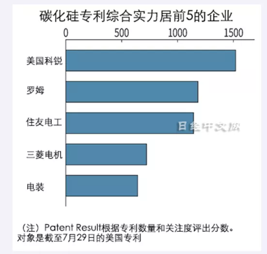 據(jù)日經(jīng)報(bào)道,日美企業(yè)壟斷了新一代半導(dǎo)體材料碳化硅(SiC)相關(guān)專利的前5位。從事專利分析的日本Patent Result公司的統(tǒng)計(jì)顯示,涉足碳化硅半導(dǎo)體基板的美國科銳(Cree)排在首位,第2~5位是羅姆和住友電氣工業(yè)等日本企業(yè)。