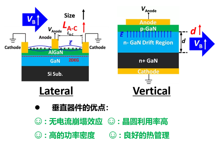 圖1. GaN 水平器件與垂直器件的特點(diǎn)比較