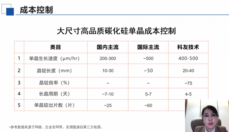 半導(dǎo)體是電子信息產(chǎn)業(yè)的基石,是國(guó)家命脈產(chǎn)業(yè)。物聯(lián)網(wǎng)、新能源、新基建等新興戰(zhàn)略產(chǎn)業(yè)嚴(yán)重依賴(lài)半導(dǎo)體產(chǎn)業(yè)。半導(dǎo)體材料制備則是半導(dǎo)體制造過(guò)程中的關(guān)鍵環(huán)節(jié)。第三代半導(dǎo)體材料是新一代信息技術(shù)核心競(jìng)爭(zhēng)力的重要支撐。期間,”碳化硅襯底與外延“論壇上,哈爾濱工業(yè)大學(xué)化工與化學(xué)學(xué)院教授, 哈爾濱科友半導(dǎo)體產(chǎn)業(yè)裝備與技術(shù)研究院有限公司董事長(zhǎng)趙麗麗做了題為“低成本碳化硅單晶材料產(chǎn)業(yè)化技術(shù)研究”的主題報(bào)告,分享了最新研究成果。