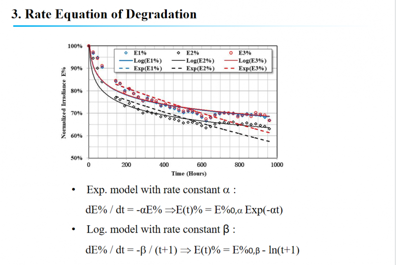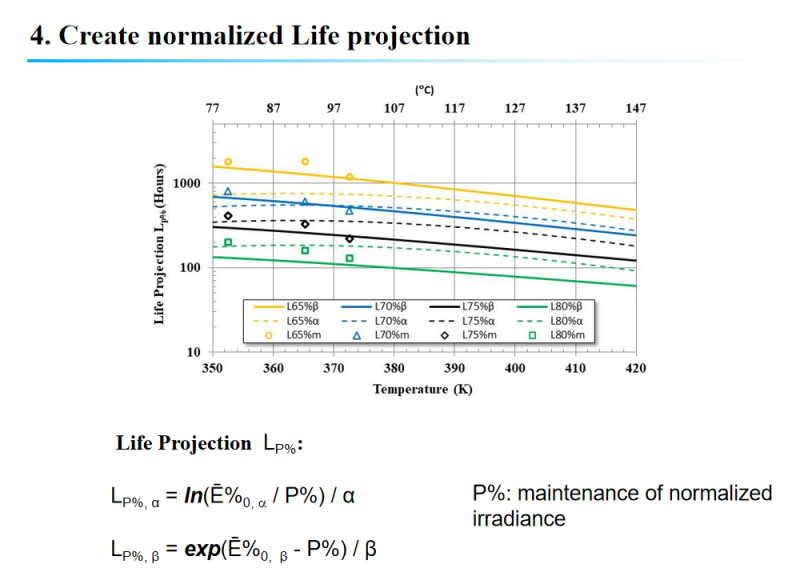報(bào)告指出,對(duì)于具有各種長(zhǎng)度/半徑的 KrCl Excilamp,成功地描繪了相對(duì)于歸一化距離的歸一化輻照度。Arrhenius方程中與溫度無(wú)關(guān)的常數(shù)A0、m、E0 和 n可以通過(guò)3個(gè)溫度下的速率常數(shù)成功確定。與使用指數(shù)最小二乘曲線擬合的模型相比,提出的使用對(duì)數(shù)最小二乘曲線擬合的歸一化輻照度模型具有更好的壽命預(yù)測(cè)精度。