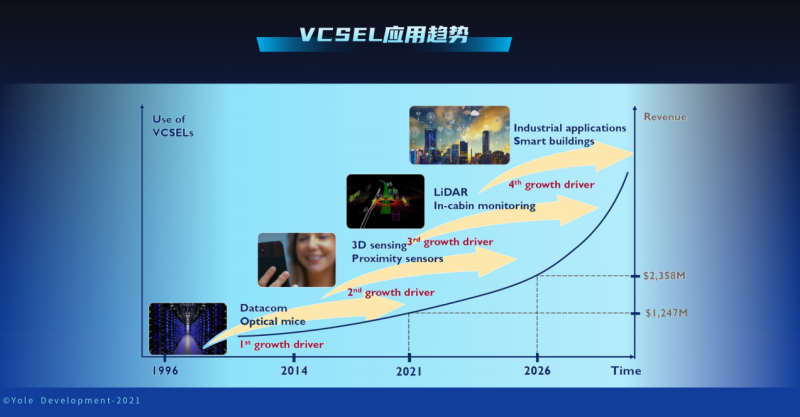 報(bào)告指出,VCSEL技術(shù)正向著高效率、高功率、高速度、高集成的方向發(fā)展。VCSEL的功率直接決定了有效的感測距離和模式。高功率VCSEL將打開更多應(yīng)用場景。VCSEL的速度在未來會(huì)從25G向50G甚至100G發(fā)展。而與光學(xué)和電學(xué)器件的高度集成,將大大縮小體積,提高性能并顯著降低模組技術(shù)。