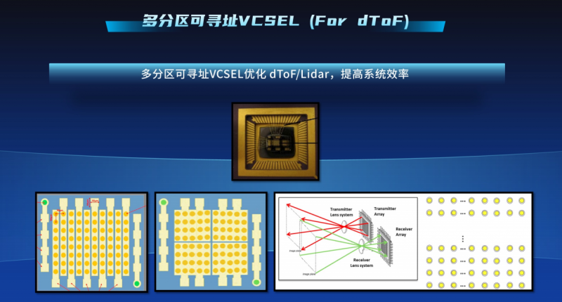 目前老鷹半導(dǎo)體已有VCSEL芯片產(chǎn)品線、3D感測產(chǎn)品線,以及數(shù)據(jù)通信VCSEL、汽車電子VCSEL等產(chǎn)品。報(bào)告還分享了多結(jié)VCSEL技術(shù)、多分區(qū)可尋址VCSEL技術(shù)等。