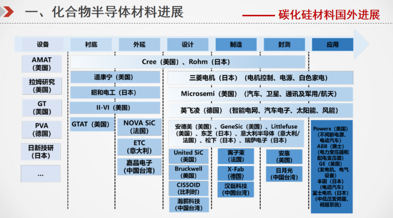 會上,山西爍科晶體有限公司總助馬康夫帶來了”化合物半導(dǎo)體材料發(fā)展展望“的主題報告,報告分享了目前化合物半導(dǎo)體的產(chǎn)業(yè)情況,并從半導(dǎo)體材料發(fā)展歷程、政策支持、主要性能優(yōu)勢以及應(yīng)用場景等方面分析了半導(dǎo)體材料發(fā)展的必要性。報告中對典型半導(dǎo)體材料(砷化鎵、磷化銦、碳化硅、氮化鎵)的市場情況、發(fā)展現(xiàn)狀等進行了概述。并詳細分享了碳化硅材料的技術(shù)現(xiàn)狀及未來發(fā)展狀況。