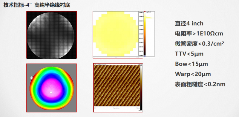 功率微波器件的4-6英寸高純半絕緣SiC襯底制備工藝及機理研究方面。通過工藝改進與優(yōu)化,N濃度持續(xù)降低,實現(xiàn)N濃度<1E16cm-3,與Cree水平相當,經(jīng)鑒定技術(shù)水平達到國際先進水平。成為國內(nèi)首家實現(xiàn)4英寸軍用高純半絕緣4H-SiC襯底批量化供應(yīng)單位;國內(nèi)首次報道6英寸高純半絕緣 4H-SiC單晶襯底研制。
