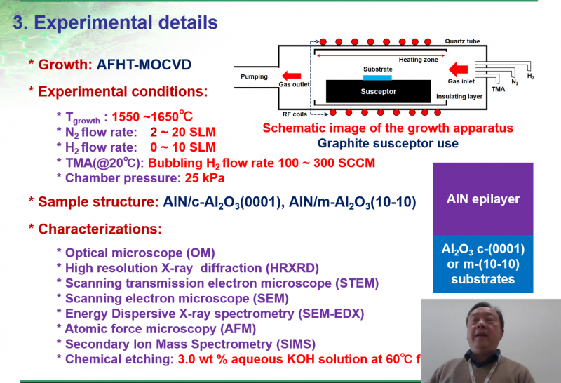 報(bào)告中,介紹了通過生長(zhǎng)技術(shù)在c面 (0001) 和m面 (10-10)藍(lán)寶石襯底上成功生長(zhǎng)高質(zhì)量極性和半極性AlN外延層。在c面 (0001) 藍(lán)寶石襯底上的極性 AlN外延層生長(zhǎng)的情況下,討論有關(guān)生長(zhǎng)速率對(duì)生長(zhǎng)條件、AlN外延層的晶格極性和外延層質(zhì)量的依賴性的結(jié)果。
