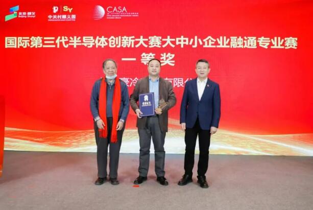 12月30日下午,在2021年第三代半導(dǎo)體創(chuàng)新發(fā)展峰會(huì)上,中國科學(xué)院院士、北京大學(xué)教授甘子釗,順義區(qū)委副書記、區(qū)長龔宗元,中國工程院院士、北京有色金屬研究總院教授黃小衛(wèi),北京市經(jīng)濟(jì)和信息化局副局長姜廣智,科技部高新技術(shù)司材料處調(diào)研員曹學(xué)軍,北京市順義區(qū)經(jīng)濟(jì)和信息化局局長、中關(guān)村順義園管委會(huì)主任蘭雄景分別為獲獎(jiǎng)選手頒獎(jiǎng)。
