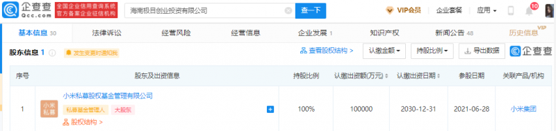 官網(wǎng)資料顯示,旗芯微主要從事汽車高端控制器芯片的研發(fā)和銷售,目標(biāo)填補國內(nèi)新一代智能網(wǎng)聯(lián)汽車控制器芯片領(lǐng)域空白,致力于發(fā)展成為中國汽車與工業(yè)控制器領(lǐng)域領(lǐng)導(dǎo)級廠商。據(jù)企查查信息披露,海南極目創(chuàng)業(yè)投資有限公司由小米私募股權(quán)基金管理有限公司100%持股。