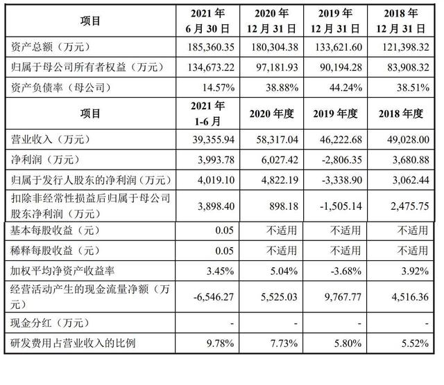 招股書顯示,2018年-2020年以及2021年上半年(報(bào)告期內(nèi)),公司營業(yè)收入分別為4.90億元、4.62億元、5.83億元、3.94億元,歸屬于母公司股東的凈利潤分別為3062.44萬元、-3338.90萬元、4822.19萬元、4019.10萬元。研發(fā)費(fèi)用分別為2707.54萬元、2682.64萬元、4510.82萬元、3849.64萬元,占當(dāng)期營業(yè)收入的比例分別為5.52%、5.80%、7.73%、9.78%。截至2021年9月30日,公司共擁有發(fā)明專利51項(xiàng)。化合物半導(dǎo)體襯底材料定制化程度較高,下游客戶對(duì)規(guī)格型號(hào)、產(chǎn)品標(biāo)準(zhǔn)、技術(shù)參數(shù)等方面的要求較高,屬于典型的高、精、尖高端材料,行業(yè)具有較高的技術(shù)壁壘、市場壁壘和客戶驗(yàn)證壁壘。