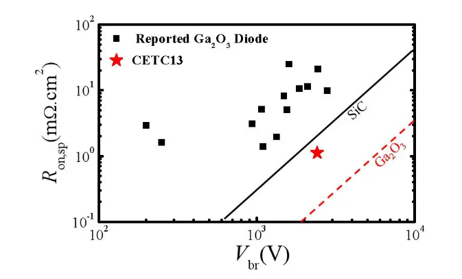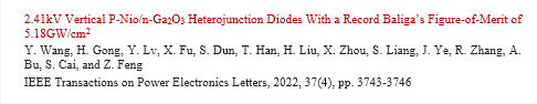 繼2016年α相氧化鎵器件功率品質因子超越碳化硅理論極限之后,2022年十三所專用集成電路國家級重點實驗室馮志紅團隊聯(lián)合南京大學葉建東團隊報道了β相氧化鎵器件功率品質因子國際首次超越碳化硅理論極限。