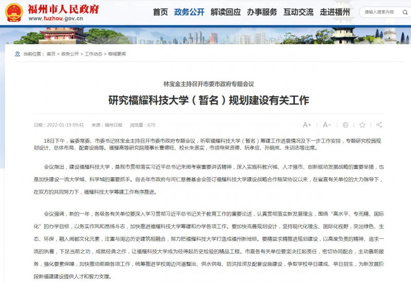 據(jù)福州市政府網(wǎng)站消息: