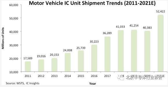 2021年汽車半導(dǎo)體單位出貨量的增幅是迄今為止自2011年以來(lái)的最高百分比增幅,也輕松超過(guò)了2017年汽車半導(dǎo)體出貨量20%的增幅。如圖所示,去年汽車半導(dǎo)體出貨量(524億個(gè))是2011年(176億個(gè))的3倍。相比之下,2021年全球IC總出貨量(3940億個(gè))約為2011年(1940億個(gè))的兩倍。