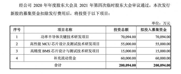 招股說明書顯示,比亞迪半導(dǎo)體本次發(fā)行股數(shù)不超過5000萬股,占發(fā)行后總股本的比例不低于10%,擬募資20.0094億元,將投建功率半導(dǎo)體芯片關(guān)鍵技術(shù)研發(fā)項目(擬投入7億元)、高性能MCU芯片設(shè)計及測試技術(shù)研發(fā)項目(擬投入5.5億元)、高精度BMS芯片設(shè)計與測試技術(shù)研發(fā)項目(擬投入1.5億元),以及補充流動資金(6億元)。