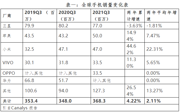 表一展示了芯片消耗的最大戶——手機的銷量變化。