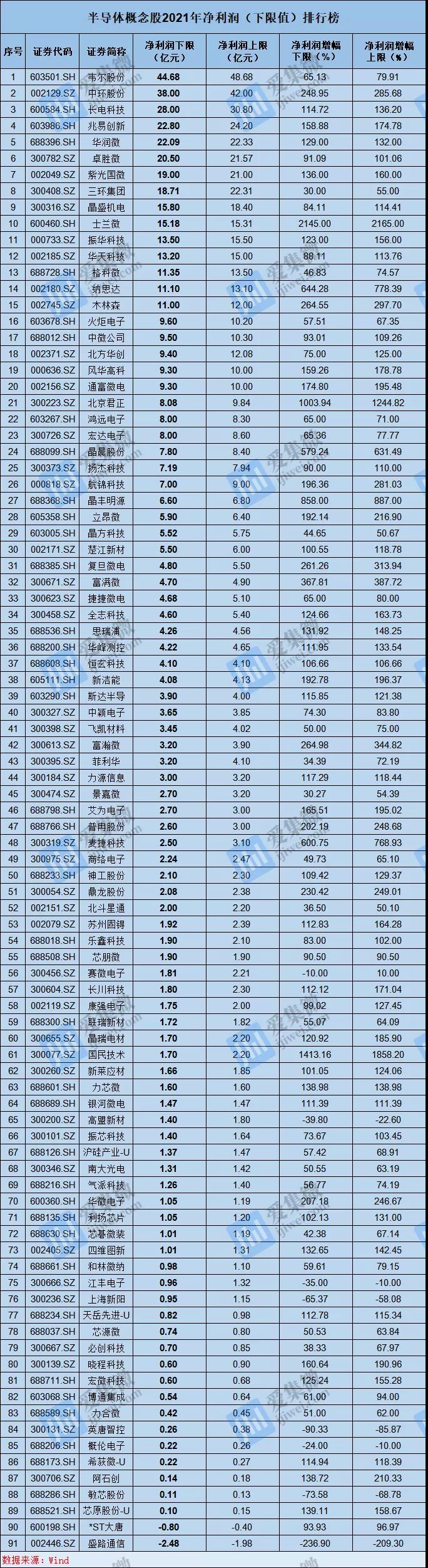 凈利潤(rùn)(下限值)在5~10億元之間的企業(yè)還有火炬電子、中微公司、北方華創(chuàng)、風(fēng)華高科、北京君正、鴻遠(yuǎn)電子、宏達(dá)電子、晶晨股份、揚(yáng)杰科技、航錦科技、晶豐明源、立昂微、晶方科技、楚江新材以及復(fù)旦微電。