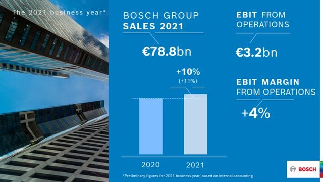 2月9日博世宣布,2021年?duì)I收初估年增10%至788億歐元,超越大流行危機(jī)前水準(zhǔn),排除匯率變動(dòng)因素不計(jì),年增幅為11%。博世去年稅前息前盈余(EBIT)初估年增超過50%至32億歐元,EBIT利潤率自前一年的2.8%升至4%左右。博世(Robert Bosch GmbH)董事會(huì)主席Stefan Hartung指出,2021年業(yè)務(wù)表現(xiàn)優(yōu)于預(yù)期。