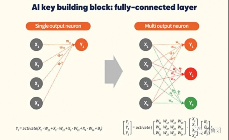 Dae-han Kwon 博士討論了神經(jīng)網(wǎng)絡(luò)處理中使用的典型數(shù)學(xué)運(yùn)算,在多輸出神經(jīng)元運(yùn)算時,特別提到了矩陣的乘法和加法。