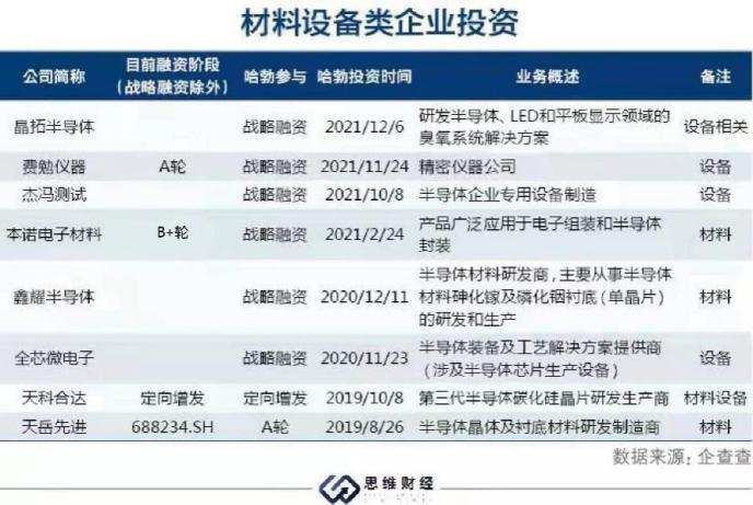 而隨著時(shí)間的推移,材料設(shè)備類公司也開(kāi)始進(jìn)入華為哈勃的投資視野。