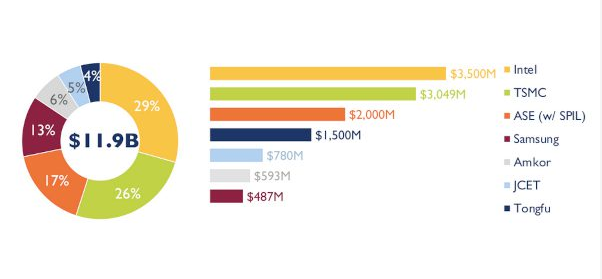 另一個領先者是代工臺積電,它在2021年在封裝資本支出上花費了30.5億美元。