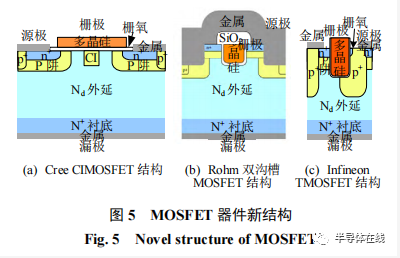SiC 二極管以及 SiC MOSFET 已逐步走向市場,出現(xiàn)較為成熟的產(chǎn)品。SiC 二極管因為不存在反向恢復(fù)電荷的優(yōu)點,已逐步替代硅基二極管得到廣泛的應(yīng)用。SiC MOSFET 也逐步用于光伏逆變器、充電樁等實際應(yīng)用場合,然而 MOSFET 器件柵氧的質(zhì)量以及較高的成本仍然是限制其得到普遍應(yīng)用的瓶頸。在未來 5 年內(nèi)國內(nèi)外的研究內(nèi)容將集中在 SiC 襯底和外延質(zhì)量的提升、柵氧工藝的優(yōu)化和器件可靠性的提高、高壓大容量 SiC 器件的研發(fā)以及超級結(jié)等新型器件結(jié)構(gòu)等方面。