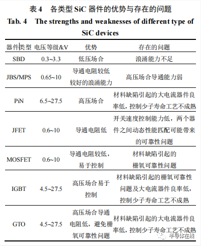 表 3 是 SiC GTO 和 IGBT 器件特性的總結(jié),因為不存在柵氧結(jié)構(gòu),GTO 器件已實現(xiàn)的通流能力大于 IGBT 器件,但仍低于直流輸電等場合的容量需求。SiC IGBT 和 GTO 器件兩者都處于研發(fā)的階段,離成熟的技術(shù)、穩(wěn)定的工藝、可靠的性能以及產(chǎn)業(yè)化還存在較大的差距。