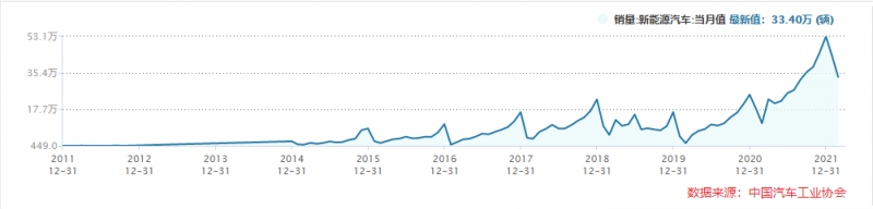 最近幾年,新能源汽車等進入高速發(fā)展期。2022年2月中國新能源車銷量同比上漲184.3%。2021年,中國新能源汽車銷售同比增長1.6倍,連續(xù)7年位居全球第一。
