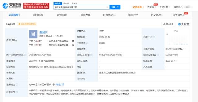 核心提示:天眼查App顯示,近日,南京卓景汽車銷售有限公司成立,法定代表人謝國慶,注冊資本200萬人民幣,經(jīng)營范圍包括新能源汽車整車銷售