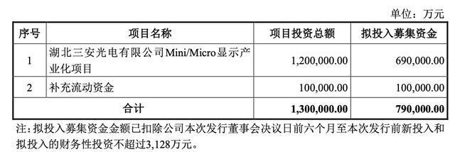 據(jù)悉,三安光電本次擬定增募資不超79億元,將用于湖北三安光電有限公司Mini/Micro顯示產(chǎn)業(yè)化項目并補充流動資金。