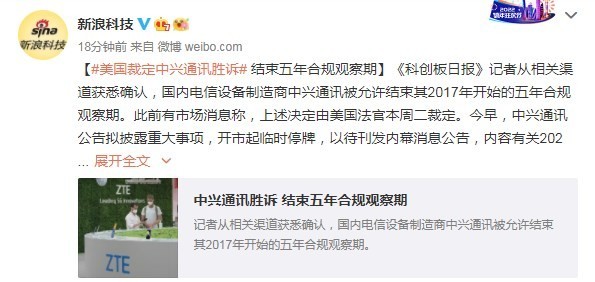 3月23日消息,據(jù)財聯(lián)社報道,國內(nèi)電信設(shè)備制造商中興通訊被允許結(jié)束其2017年開始的五年合規(guī)觀察期。至此,在長達(dá)五年的“拉鋸戰(zhàn)”中,中興通訊終于勝訴。