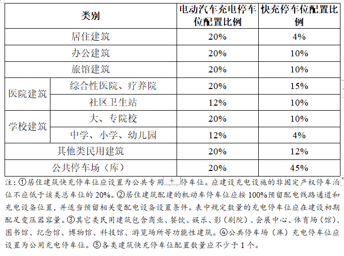 (3)新建各類民用建筑電動(dòng)汽車充電停車位配建指標(biāo)不應(yīng)小于下表的規(guī)定。