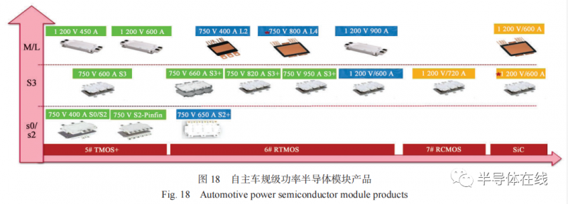 國產(chǎn)車規(guī)級(jí)功率器件已經(jīng)形成包括標(biāo)準(zhǔn)封裝、Pin-fifin(針翅)單面水冷和雙面散熱封裝等系列化產(chǎn)品(見圖 18),可以滿足各種功率等級(jí)電機(jī)控制器應(yīng)用需求,并通過了車廠嚴(yán)格驗(yàn)證與考核,開始批量應(yīng)用推廣,有能力支撐汽車電動(dòng)化的應(yīng)用進(jìn)程。