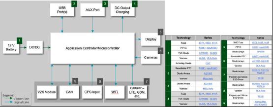 汽車ADAS控制器系統(tǒng)電路保護(hù)框圖及對(duì)應(yīng)產(chǎn)品系列