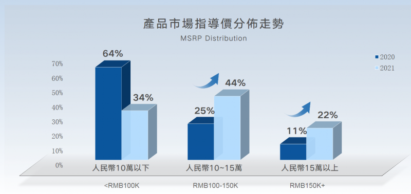 去年,吉利汽車的單車均價增長了9%,來到7.9萬元,10萬元以下產(chǎn)品占總產(chǎn)品序列比例大降30%,而10萬-15萬和15萬元以上的比例分別提升了19%和11%。新推出的“中國星”系列在高端市場給吉利打開了新的產(chǎn)品周期,以15萬左右的官方指導(dǎo)價實現(xiàn)超20萬輛的年度銷量。領(lǐng)克以年銷22萬輛、平均加權(quán)售價16.5萬元,站穩(wěn)了主流區(qū)間。
