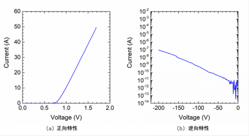 圖3 肖特基勢壘二極管的(a)正向和(b)逆向的電流-電壓特性
