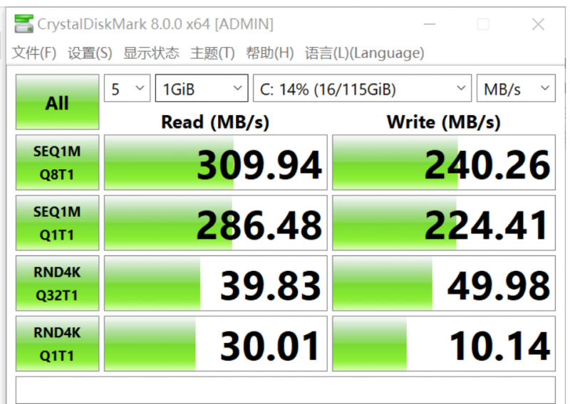 (128GB 樣品CrystalDiskmark測(cè)試截圖)