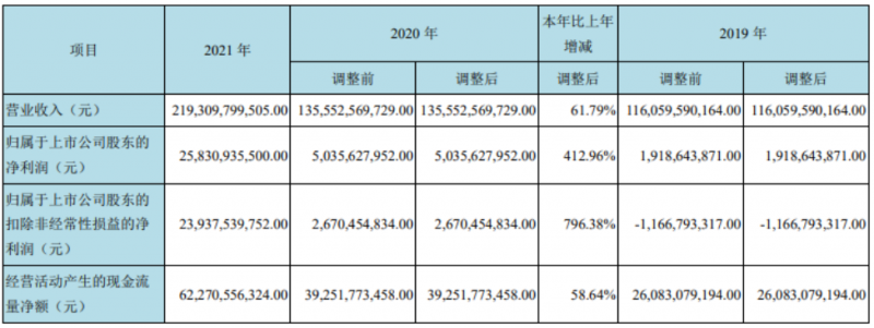 京東方發(fā)布業(yè)績(jī)報(bào)告稱,2021年,公司實(shí)現(xiàn)營(yíng)業(yè)收入為2193.10億元,同比增長(zhǎng)61.79%;歸屬于上市公司股東的凈利潤(rùn)為258.31億元,同比增長(zhǎng)412.96%。