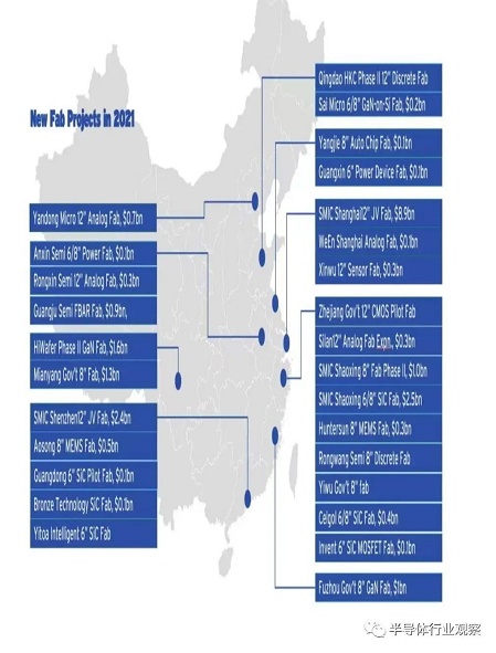 中國(guó)還在構(gòu)建其半導(dǎo)體制造供應(yīng)鏈方面保持強(qiáng)勁增長(zhǎng),2021 年,國(guó)內(nèi)宣布新增 28 個(gè)晶圓廠建設(shè)項(xiàng)目,新計(jì)劃資金總額為 260 億美元 。中芯國(guó)際和其他中國(guó)半導(dǎo)體領(lǐng)導(dǎo)者則宣布建設(shè)更多的工廠,重點(diǎn)是成熟的技術(shù)節(jié)點(diǎn)。在各方支持下,晶圓制造初創(chuàng)公司在后緣制造領(lǐng)域不斷涌現(xiàn)。