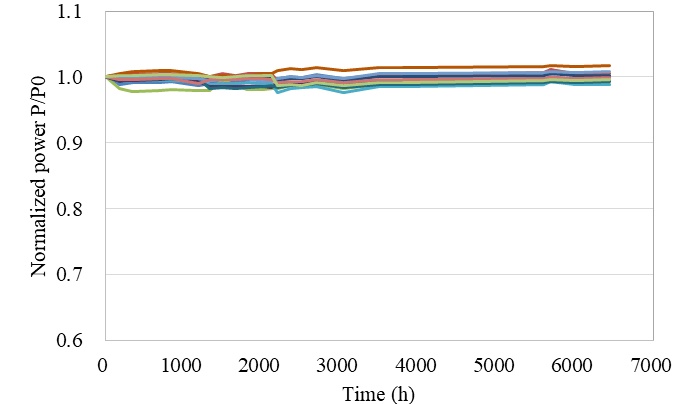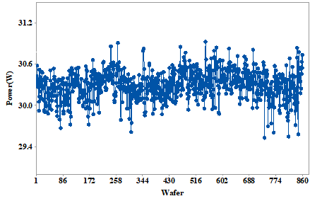 圖 14 6" 晶圓的所有芯片的平均輸出功率變化趨勢,其中一個數(shù)據(jù)點代表晶圓的平均輸出功率。